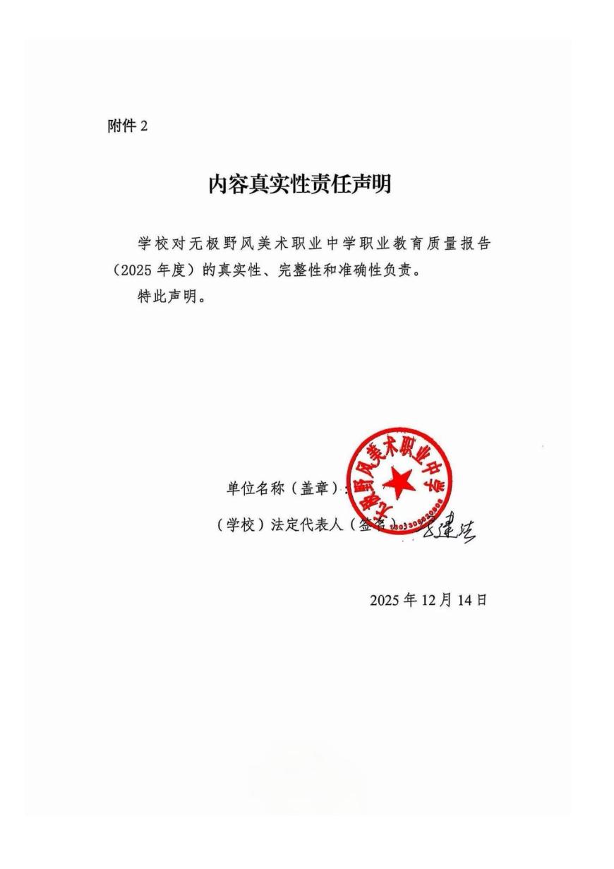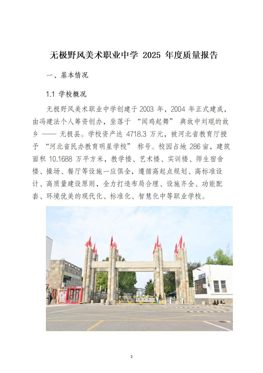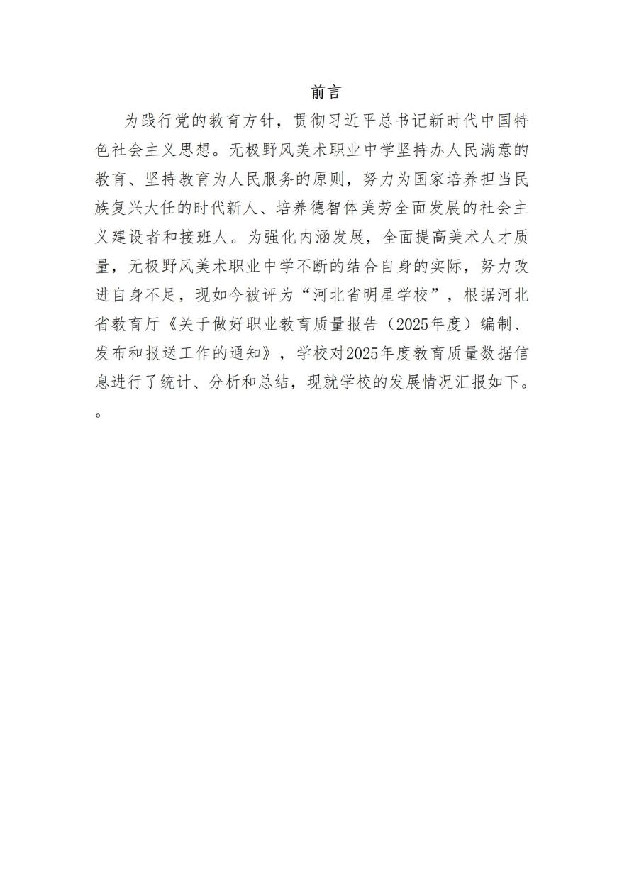 无极野风美术职业中学2025年度质量报告